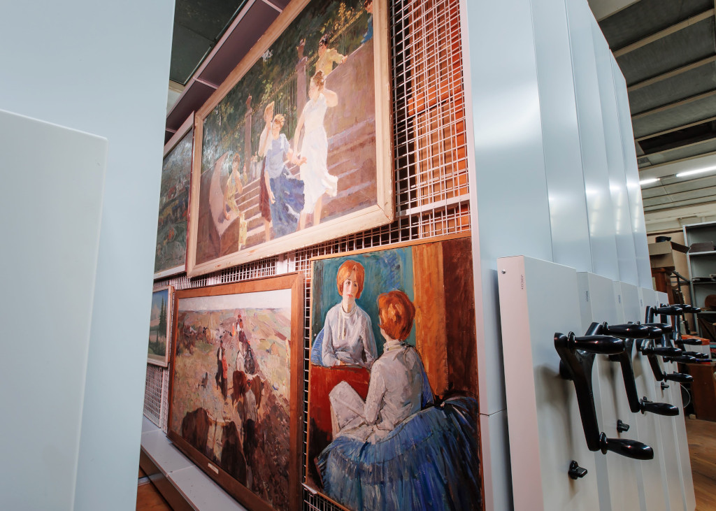Сегодня наиболее эффективной системой для бережного и безопасного хранения художественных произведений в музее считаются мобильные стеллажи для картин и холстов. Металлические стеллажи с двусторонними сетками предназначены для удобного вертикального хранения картин, икон и других предметов живописи. Они вместительны и компактны, за счет своей технологии экономят ценное пространство помещения.